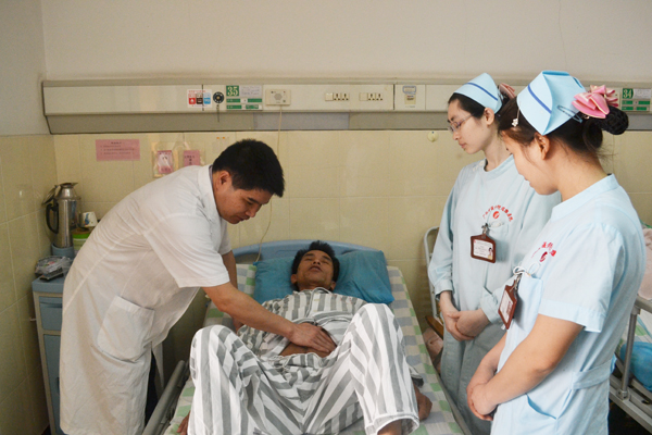 韦建宝主任正在为老慕检查病情