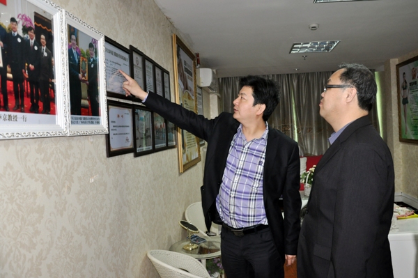 中心主任李京教授及中心工作人员热情接待了吴一昌一行,并向吴一昌会长介绍了瑞康整形中心的基本概况。在李京教授的带领下,吴一昌会长一行先后参观了瑞康整形的会客大厅、医学美学咨询与设计室、中医美容部、激光室、层流净化手术室、VIP病房等。吴会长对瑞康整形的医疗环境、高端设备、专家团队、服务项目等方面表示了十分的肯定和高度的赞赏。