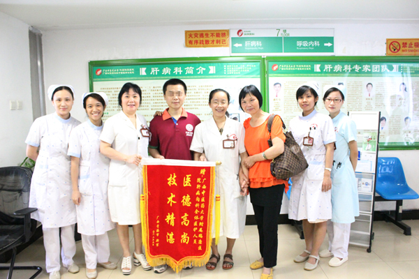 “去年9月儿子突然间全身发黄,吃不下饭也干不了活,真是把我们一家急坏了。要不是盛主任及科室全体医护人员,真不知道儿子会怎么样了。”