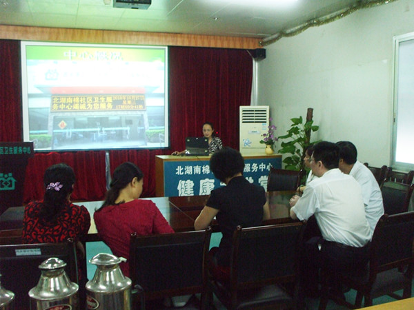 杨连招副书记一行首先在中心主任廖康兴、副主任黄富军、梁秋云及护士长庞玲玲的陪同下视察了中心的整体环境、科室设置和服务功能分区。随后,听取了中心常务副主任卢永华关于社区卫生服务中心概况、社区医疗、基本公共卫生服务和社区技能实践教学等工作开展情况的汇报。