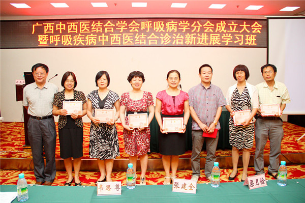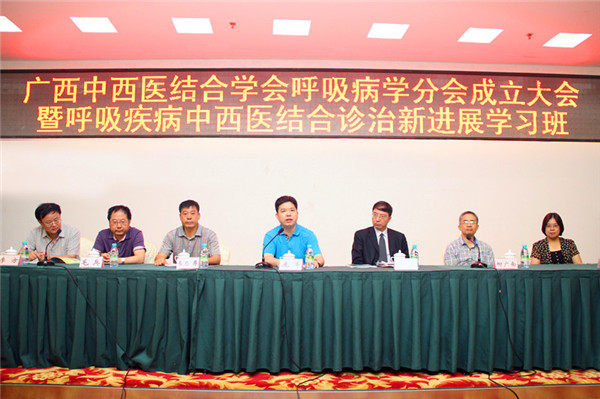 2013年6月21日至23日,广西中西医结合学会呼吸病学分会成立大会暨呼吸系统疾病中西医结合诊治新进展学习班在南宁召开,来自广西全区二、三级西医或中西医结合医院推荐的知名呼吸病专家学者和医师汇聚一堂,召开广西中西医结合学会呼吸病学分会成立大会。此次大会的成立是广西呼吸界的一大要事,会后同时举办学习班,共同探讨中西医结合诊疗呼吸系疾病新技术、新方法和新进展。此次会议由广西中西医结合学会主办,由广西中医药大学附属瑞康医院承办。