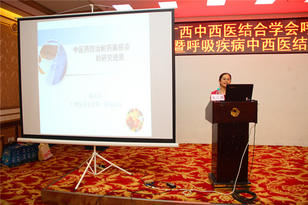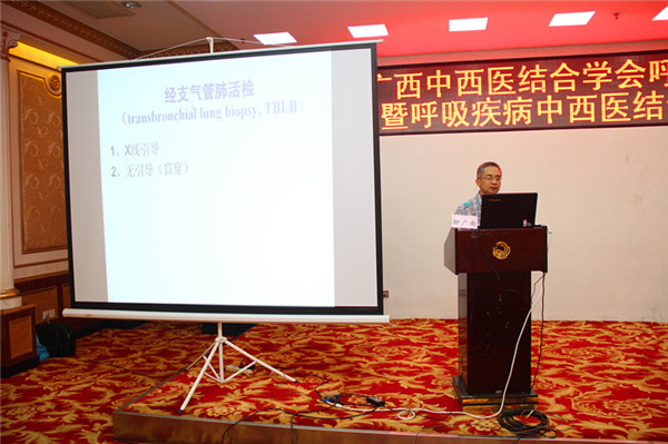 中国中西医结合学会呼吸专业委员会主任委员董竞成教授在会上作了题为《常见气道炎症性疾病中医院干预的物质基础和作用机理》的报告,阐释如何在现代科学和传统中医中找到合适的切入点,加深大家对传统医学的认识和理解。四川大学华西医院中西医结合科毛兵教授作《COPD中西医结合诊疗新进展》报告,广西医科大学第一附属医院柳广南教授,广西壮族自治区人民医院秦志强主任,广西中医药大学附属瑞康医院呼吸内科谭玉萍教授,广西中医药大学附属瑞康医院呼吸内科陈斯宁教授,广西中医药大学第一附属医院许光兰教授,广西医科大学第一附属医院凌江红教授等均作了精彩讲座。