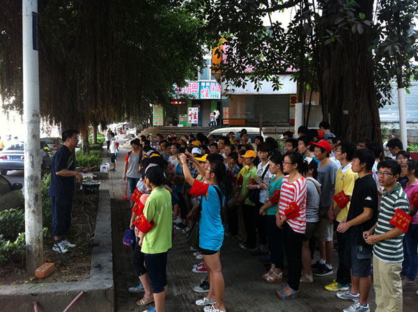 为积极响应南宁市委、市政府 “美丽南宁,整洁畅通有序大行动”的号召,在校团委、医院党委的指导下,2013年6月22日上午8时,广西中医药大学瑞康临床医学院团委叶修廷书记带领50名学生志愿者与西乡塘北湖街道办联合开展“美丽北湖,清洁村居”活动。