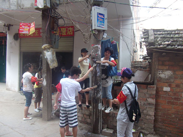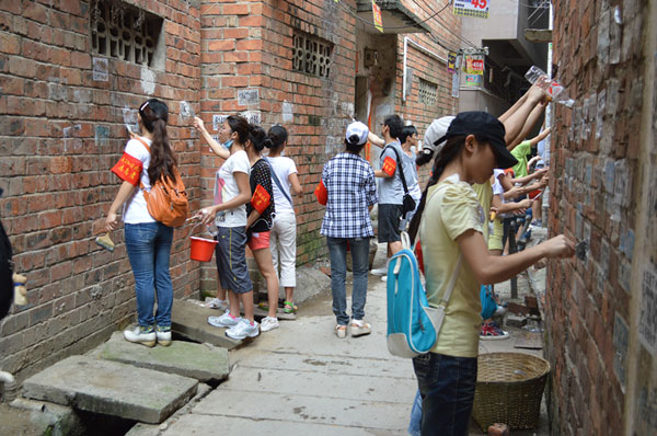 活动中,志愿者们顶着高温,冒着烈日,深入街区场所、农贸市场、城中村、背街小巷、居民小区、城市出入口等重点区域场所,对违规张贴的户外小广告进行了清洁工作。