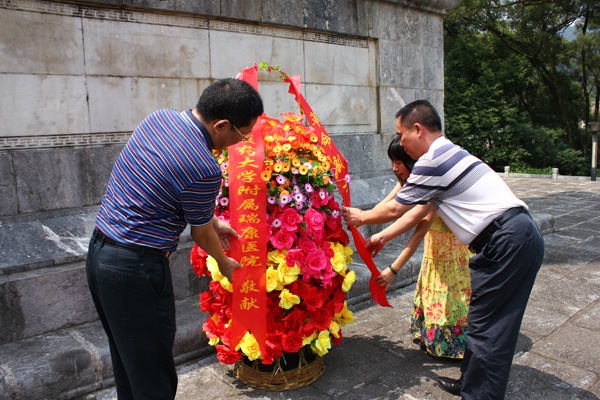 唐友明书记,陈日兰副书记和庞刚副院长向革命先烈敬献花篮