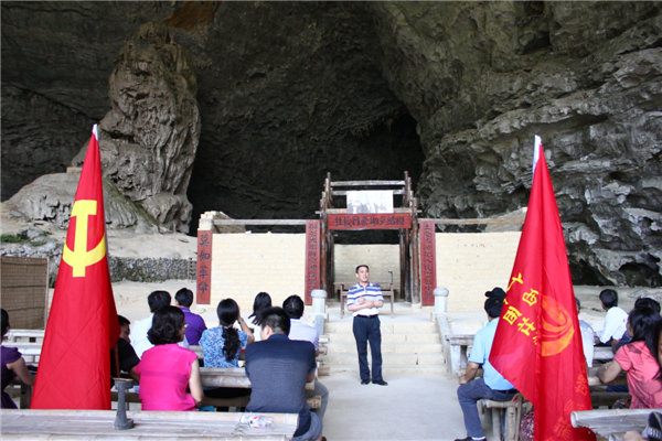 东兰县卫生局局长韦东禄引导参观将军园