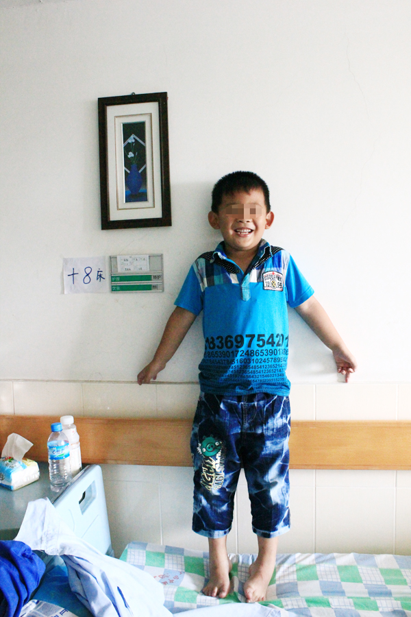疝气儿童手术康复后露出开心笑容。