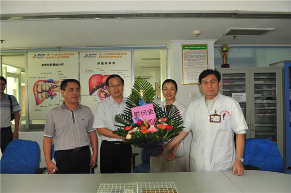 作为内科代表,肝病内科主任盛庆寿博士代表瑞康医院工作在临床一线的教师接受了戴铭副校长的慰问。了解到肝病内科新老管理层配合融洽,戴铭副校长表示,这种氛围非常难得,新老协作产生的团结精神为科室的发展提供坚实的后盾。“老医生、老教师是学校的一块宝,经过近几年的历练,临床医学院一批博士已经成长起来,他们知识能力过人,但是在教学临床经验上与老一辈相比稍显欠缺,需要向前辈不断学习。肝病内科是瑞康医院的老牌学科,在去年成为国家临床重点专科后,发展更为迅速,这些离不开新老教师的共同努力。”戴铭副校长希望医院继续保持这种优良的作风,为学校和医院的发展注入更多力量。