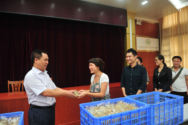 唐友明书记向学生代表赠送月饼