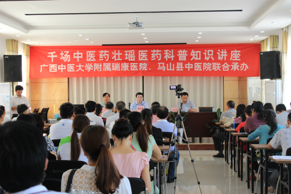 启动仪式上,马山县卫生局局长韦清川首先对瑞康医院博士专家团表示欢迎,他说,此次义诊活动给马山县群众带来了健康的福音。我院副院长高宏君介绍了我院的基本情况,并代表医院赠送马山县中医院6本《国医大师班秀文著作》和40本由北京大学人民医院胡大一教授编写的《国人健康手机号》。启动仪式结束后,讲座和义诊同时进行,一部分专家在马山县中医院会议室为县卫生局、马山县中医院医务人员和各乡镇卫生室人员进行《老年人心脑血管疾病防治》、《消化内科的新进展》、《急腹症的诊治》、《恶性肿瘤的诊治》和《盆腔炎、宫血的诊治》5场知识讲座。而另外一部分专家则在马山县中医院门诊部举行义诊活动,早早等候在现场的群众主动排队等候专家为自己排健康之忧愁,解疾病之困扰,义诊现场热闹非凡,活动持续到中午12点依然有群众在测量血压处和专家面前排队等候。