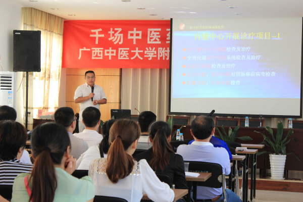 为了深入贯彻中共中央关于开展党的群众路线教育实践活动的精神和党中央关于推进基层医疗卫生事业的要求,基于群众“看病难,看病贵”的问题着手,我院与马山县中医院联合开展“千场中医药壮瑶医药科普知识讲座和义诊活动”。 9月29日上午,我院副院长高宏君带领由消化内科、胃肠外科、肿瘤科、妇科、肾内风湿免疫科、心血管内科、泌尿外科、肝病内科、骨科和神经外科等11个临床科室的博士专家组成的义诊团队奔赴马山。
