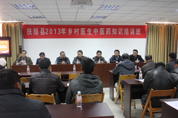 2013年12月25日上午,为期两天的2013年扶绥县乡村医生中医药知识培训班在我院空港院区、扶绥县中医医院开班,扶绥县卫生局副局长汪凯波,医政股股长邓玉桓,空港院区院长韦兴中,副院长林宗汉、韦勇、黄建东等领导和来自扶绥县11个乡镇的120名乡村医生参加了开班仪式。开班仪式由医务科科长农田泉主持。