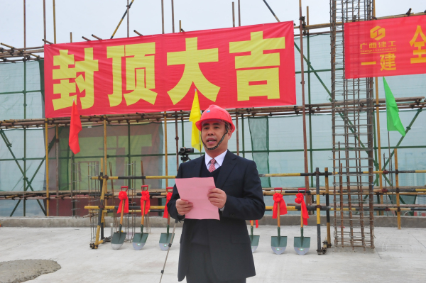 经过4年多的建设,2009年第四批扩大内需中央预算内投资广西重点中医院建设项目——我院25层门诊住院综合楼项目按质按量完成了建设目标,完成了主体结构的封顶。12月30日上午,我院在新门诊住院综合楼举行了封顶仪式。医院党委书记唐友明,团区委学校部部长黄龙坚,广西中医药大学第一附属医院副院长桂雄斌,医院正处级调研员叶日乔,党委副书记、纪委书记陈日兰,副院长庞刚、黄国东、韦思尊、高宏君及施工方、监理方、南宁市建筑设计院等领导出席仪式,共同见证了这历史性时刻。封顶仪式由医院党委书记唐友明主持。