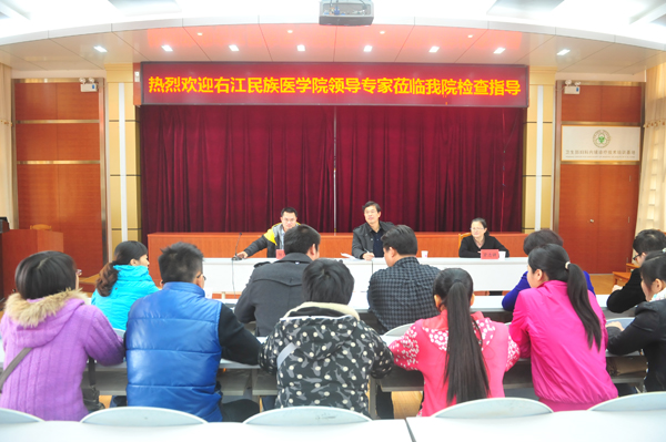 2014年1月3日下午,右江民族医学院体育部潘宁敏副主任等一行3人来我院进行实习中期检查,我院教务学生部全体老师、神经内科3区的负责人和右江民族医学院体育保健专业的8名实习生参加了座谈会。座谈会由教务学生部莫启章主任主持。