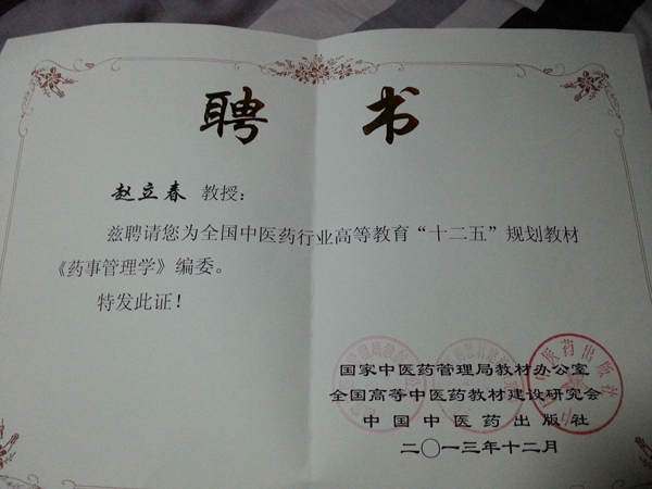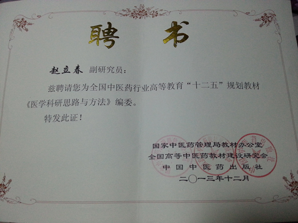 2014年1月4日、11日由国家中医药管理教材办公室、全国高等中医药教材建设研究会、中国中医药出版社承办的全国中医药行业高等教育“十二五”规划研究生教材《医学科研思路与方法》和本科生教材《药事管理学》第一次编写会分别在河南中医学院和江西中医药大学召开。