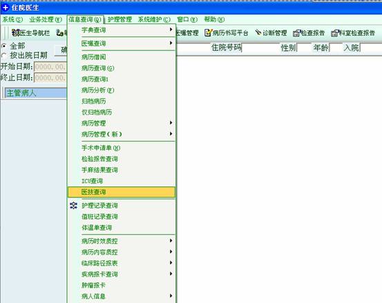 要查询某个病人的病理检查结果,先从信息查询的医技查询子菜单进入