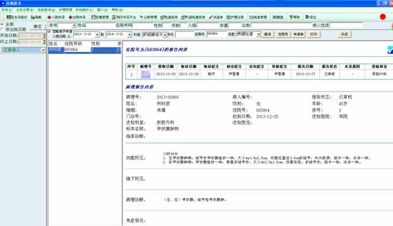 点击某个病人后,右边显示框内出现病理查询到的结果