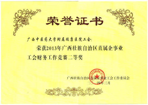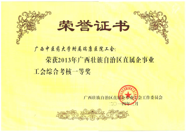 根据《2013年自治区直属企事业工会对各基层工会综合考核方案》和《2013年度自治区直属企事业基层工会财务工作竞赛评比的通知》精神,经自治区直属企事业工会工作委员会严格考评评定,我院工会荣获2013年度自治区直属企事业工会综合考核一等奖、自治区直属企事业工会财务工作竞赛二等奖。
