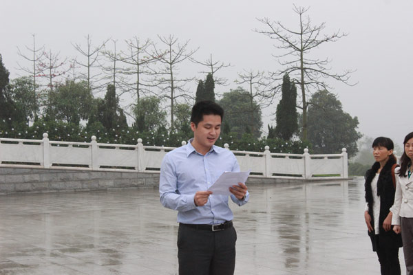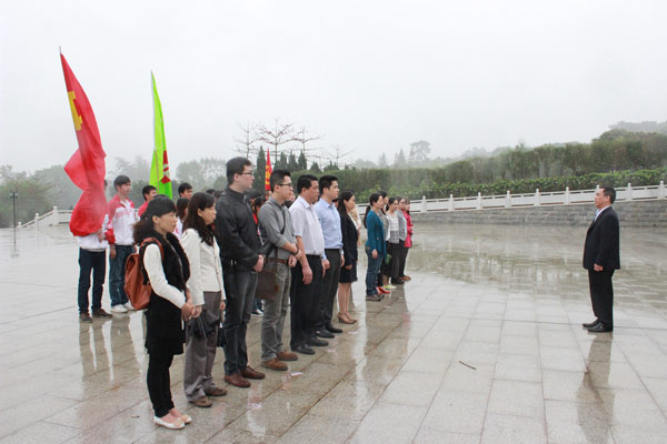为进一步加强革命传统教育,大力弘扬爱国主义精神,深入推进社会主义核心价值观的建设,4月9日,我院党委书记唐友明,党委副书记、纪委书记陈日兰带领我院党员代表、职工代表、青年文明号号长和学生代表到广西烈士陵园缅怀先烈,祭奠英魂。