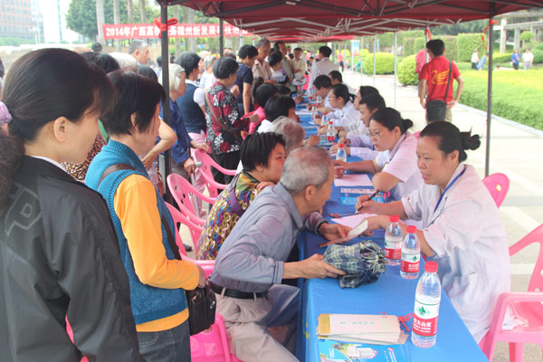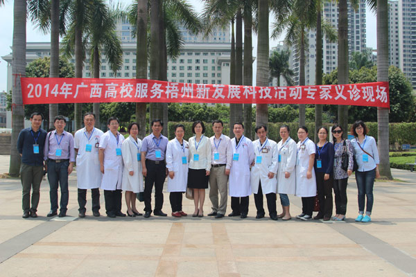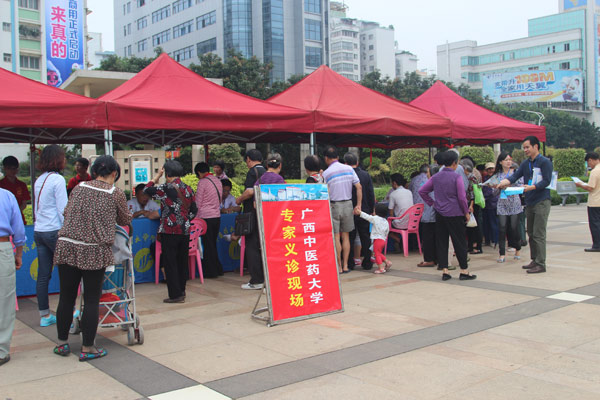 4月17日上午,2014年广西高校服务梧州新发展科技活动在市政广场拉开序幕,30多所区内高等院校的领导和专家齐聚梧州,为梧州市实现科技创新出谋划策,提供智力支持。广西中医药大学在副校长冷静带队下参与此次活动,同时,我院由党委副书记、纪委书记陈日兰带领肿瘤科练祖平主任、针灸科朱英主任、妇科陈静主任、儿科李日东主任等专家博士赶赴梧州参加梧州市政府组织的义诊活动,为梧州市民提供义诊服务。