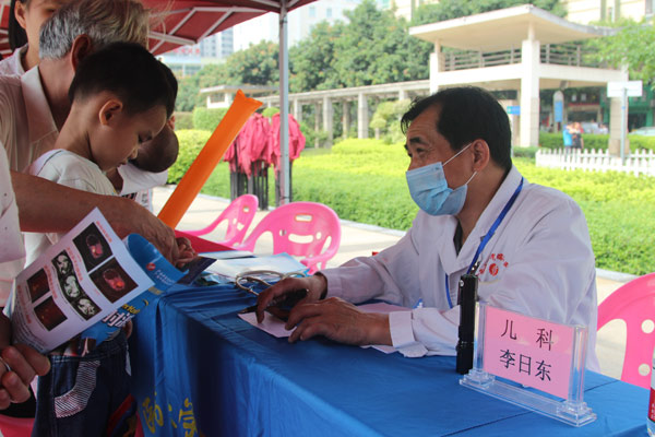 儿科副主任李日东的诊位前排起了长队,小宝宝们啼闹声不断,李主任细致认真的逐个为孩子们听诊检查,在广场散步的一位阿姨看到有义诊活动,便抱着8个月大的宝宝过来问诊,阿姨说,小宝宝从昨天开始便咳嗽不止,起初她以为只是普通的咳嗽,喝一些小儿凉茶便能治好,但也没见好。但经过李主任的初步诊断,她才知道小宝宝患了气管炎,需要打针治疗。阿姨感叹,此次义诊真是给她上了一课,以后对咳嗽不能掉以轻心。