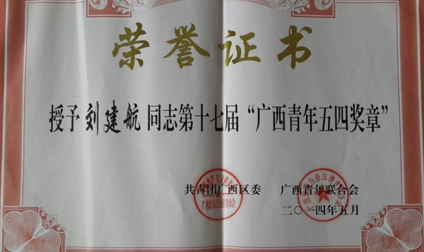 5月4日,广西纪念五四运动95周年暨全区各界优秀青年代表交流座谈会在南宁召开,会上表彰了全区各界优秀青年,我院贵康整脊手法培训基地、外事管理办公室主任刘建航在会上被授予第十七届“广西青年五四奖章”。