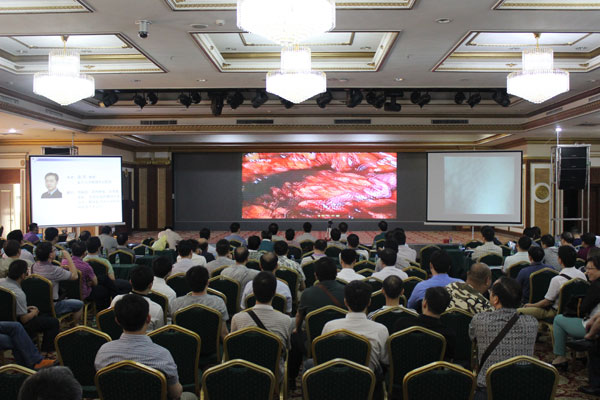 在现场手术环节中,南方医科大学南方医院李国新教授、国家卫计委肝胆肠外科研究中心的刘蔚东教授、复旦大学附属华山医院的陈浩教授分别做了“腹腔镜胃癌根治术”、“ 腹腔镜低位直肠癌根治术”、 腔镜下腹股沟修补术(TEP)手术演示。在手术演示过程中,参会人员可随时向手术操作者提出问题,手术操作者进行解答并将自己在某些环节操作的心得跟大家分享。