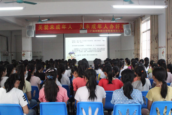 为积极响应国家卫生计生委、国家食品药品监管总局和中国科协的关于开展 “健康中国行—全民健康素养促进活动”的号召和精神,6月4日,我院医疗服务部组织视光中心和妇科专家,第四次走进南宁最大城中村——万秀村的星星学校,开展“关爱未成年人,为未成年人办好事”义诊与讲座活动,为500余名学生进行视力检查,并为五、六年级约200余名女生开展生理卫生知识讲座活动。