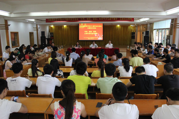 为迎接党的93岁生日,加强大学生爱国主义和革命传统教育,进一步增强毕业生党员的爱党热情,2014年6月5日下午,广西中医药大学瑞康临床医学院党委在大学生俱乐部三楼开展了主题为“传承、诚信、感恩、以青年梦托起中国梦” 教育活动,瑞康医院党委副书记陈日兰主持。