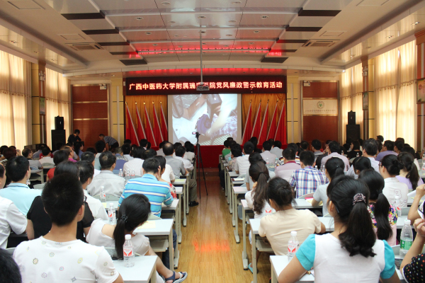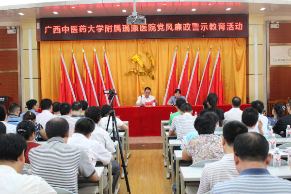 2014年6月26日下午,瑞康医院与南宁市兴宁区人民检察院在医院十楼教室开展党风廉政警示教育和法制宣传教育活动。医院领导班子成员、中层干部及部分党员代表,以及兴宁区人民检察院职务犯罪预防局、举报中心、人民监督办公室等负责人参加会议。活动由医院党委书记唐友明主持。