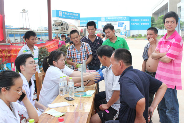 本次活动主要面向世锦赛场馆建筑工地的200多名农民工,我院团委在陈日兰副书记的指导下,组织内分泌科姜俊玲医生、肾内风湿免疫科谭嘉臻医生、肝病内科陈黎医生以及我院的实习生组成义诊团队,为工人提供义诊和测量血压服务。