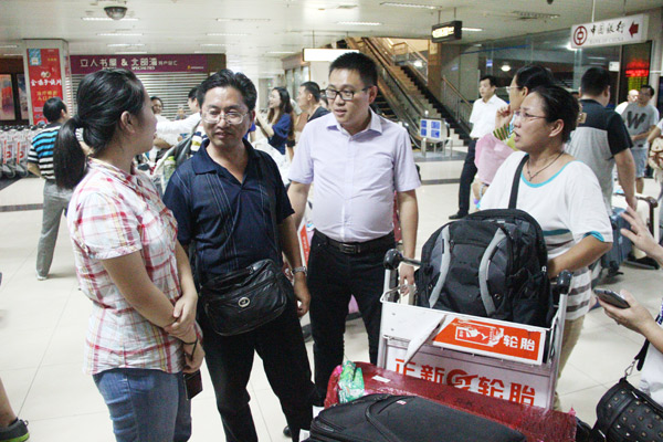 受医院领导委托,人力资源部兰达治副主任率队由信息宣传部工作人员、专家家属等组成的欢迎队伍早早来到机场迎接凯旋的两位专家。