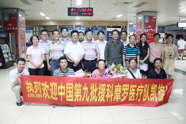 第九批援科摩罗医疗队专家和接机人员合影留念