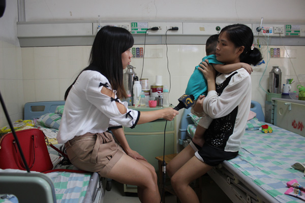 哲民的妈妈在接受采访