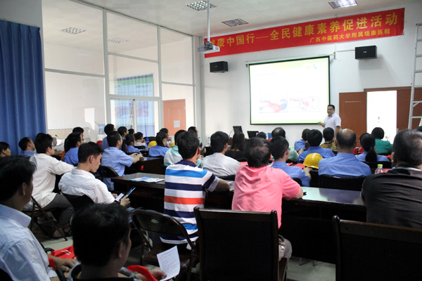 近期,我院医疗服务部多次组织医院治未病中心黄彬主任、营养科刘钰主任、消化内科副主任张涛博士、急诊科欧阳国林副主任、骨科黄中飞医生、内分泌科姜俊玲主治医师、胃肠肛门外科秦伟夫博士等专家博士走进区公众信息产业有限公司、广西送变电建设公司、广西大学、玉柴专用汽车有限公司等公司单位开展健康讲座,教授大家健康养生知识,养成健康意识,从而有效预防疾病的发生。