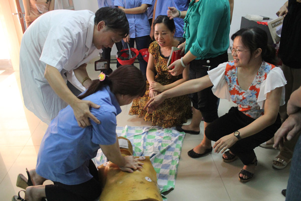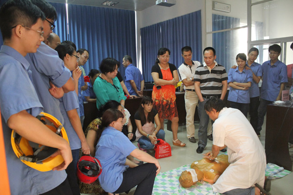 我院急诊科欧阳国林副教授向大家详细介绍气道梗阻的识别、海姆立克急救法、通气法、止血法,特殊情况处理方法等。并亲自示范日常急救、骨折急救、紧急心血管救护、基本心肺复苏方法,尽量在最短的时间内教会大家日常急救的知识。 在场群众跃跃欲试,纷纷报名进行心肺复苏现场操作,在他们练习过程中,欧阳国林副教授耐心指导,并手把手认真纠正操作人员不规范的动作,得到了大家的一致好评。