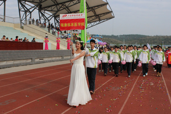 2014年11月15日下午,广西中医药大学第36届田径运动会在我校五合校区圆满落幕。瑞康临床医学院运动员经过前期的刻苦训练,历时两天的比赛,与其他13个学院的同学们展开了激烈角逐,最终取得了田径运动会总分第五名的好成绩。