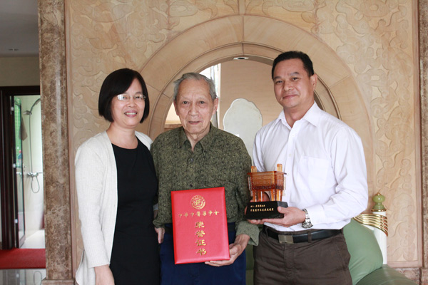 11月25日,在唐友明书记的委托下,黄国东副院长与国医堂主任牛豫洁教授代表医院前往黄教授住所转交奖杯及证书。