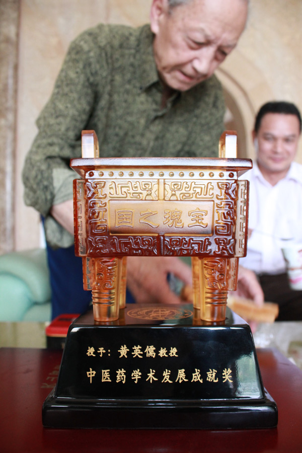 黄国东副院长受唐友明书记委托向黄英儒教授转交证书及奖杯
