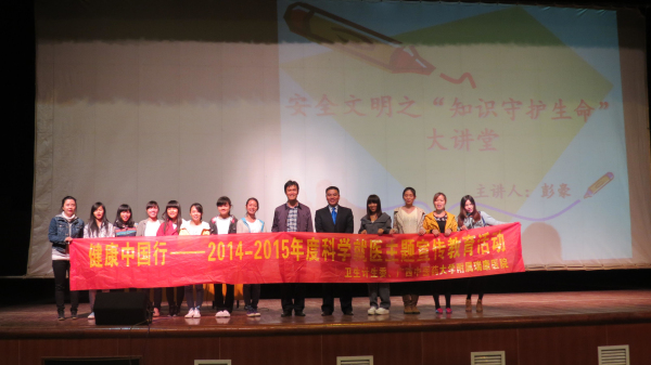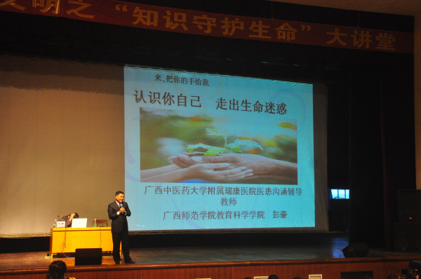 应广西财经学院外国语学院党委副书记吴仕宇的邀请,在我院医疗服务部的组织下,12月2日,我院医患沟通辅导教授、广西师范学院教育科学学院彭豪教授一行来到该院开展了健康知识讲座,讲座得到学校领导和师生们的热烈欢迎。