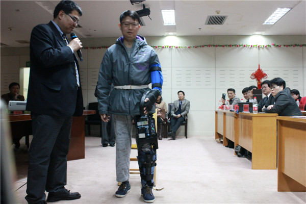 南京医科大学第一附属医院康复医学中心副主任、医学博士许光旭教授讲学题目为《步态康复训练及步态康复治疗新武器--仿生腿的临床运用》,在会场上备受瞩目的机器人便来自他的介绍,目前在我院神经内科三区一名因脑梗死无法直立行走的患者在穿戴一个月后病情得到了明显改善。