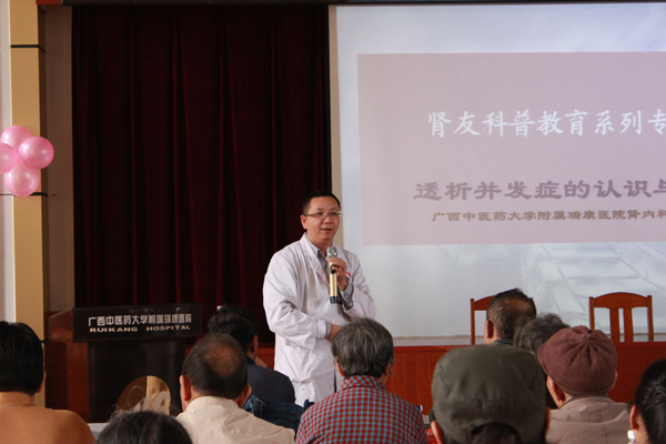 大会首先由肾病科主任黄仁发博士作了《透析并发症的认识与治疗》的专题讲座,对维持性血透患者的毒素、肾性高血压、营养不良、肾性骨病等健康知识进行了深入浅出地讲解,并鼓励病友保持良好的心态,战胜病魔。