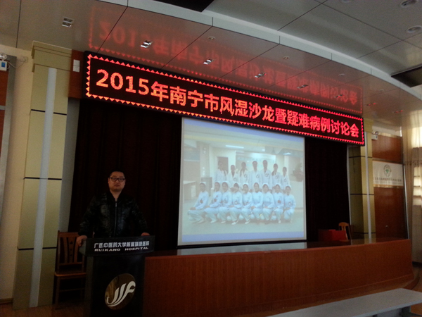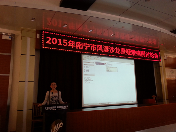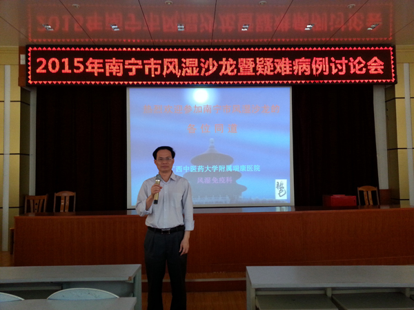 3月28号下午,由我院风湿免疫科承办的南宁市2015年第一期风湿病沙龙暨疑难病例讨论会在我院十楼教室举行,前来参加此次会议的有来自南宁市各家医院以及特地从桂林、柳州、梧州、玉林、钦州、北海、百色、河池、贵港等地赶来参加的风湿界同道约60多人,外地参会人数在既往的类似会议上是不多见的,可见大家对此次会议非常感兴趣。