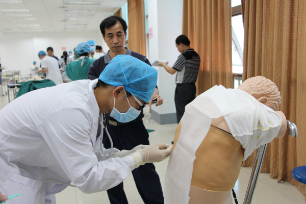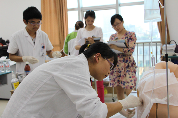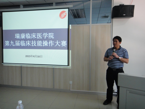 2015年4月16日,以“传承感恩,诚信创新,博学强览,蓄势待发”为主题的瑞康临床医学院第九届临床技能大赛在广西中医药大学明秀校区图书馆医学教育实训中心成功举行。大赛旨在提高我院学生的综合素质,进一步激发同学们的学习兴趣,营造浓厚的学习氛围,提高同学们的临床实践能力和自主学习能力。大赛评委由瑞康临床医学院杨靖、李日东、朱寿鸿、朱志华、陈威、蒋媛静等老师及参加第六届全国高等医学院校大学生临床技能竞赛华南区分区赛的队员担任,2011级204位同学均参加了比赛。