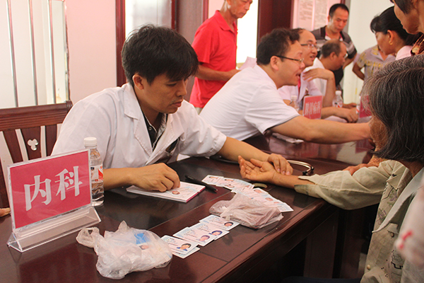 在建党94周年来临之际,我院空港院区党支部于6月11日在院区党支部书记、常务副院长林宗汉的率领下,组织由内一科、脾胃病科、外科、骨伤科、妇产科、针灸推拿科等科室组成的专家队伍,到渠黎镇渠茤村开展迎七一义诊活动。