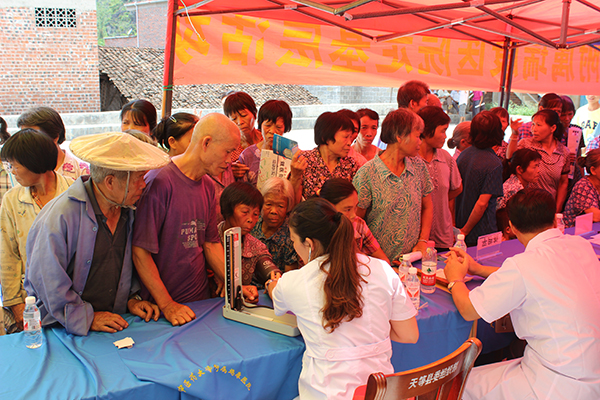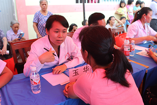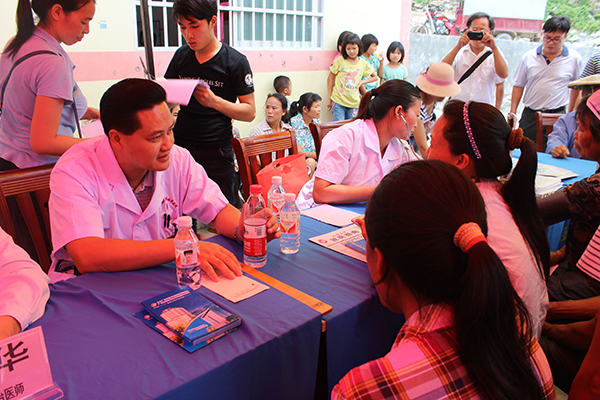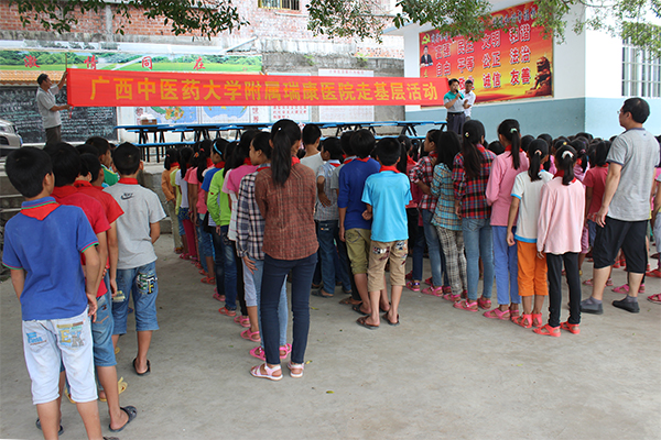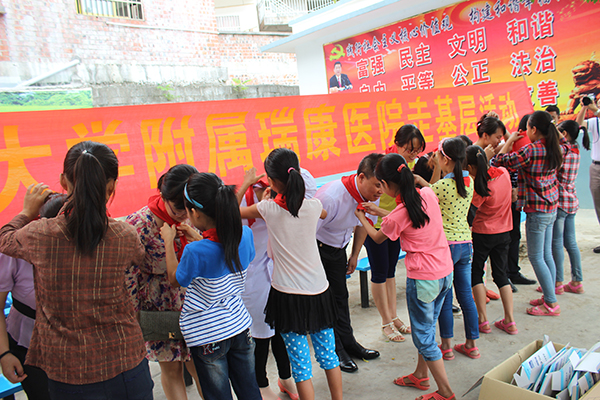 随后,由机关一支部、机关三支部、肿瘤科、呼吸内科、神经内科、内分泌科、泌尿外科、骨科、妇产科、口腔科以及皮肤科专家博士组成的医疗团队在屯文化活动室前开展大型义诊活动。当地群众将义诊现场围得水泄不通,纷纷将各自经受的病痛向专家们倾诉,气氛热闹而井然有序。“我们天等是偏远山区,很少有专家到村里义诊,今天瑞康医院这么多专家来送健康下乡,我们都感到非常开心。”群众表示。
