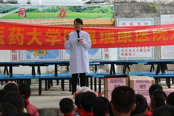 活动于11点在天南小学操场展开,我院向学校捐赠了一批图书,为当地留守儿童送来了牙膏牙刷、糖果等物品,并由口腔科韦雅妮医生现场为孩子们讲授口腔保健知识,受到老师和孩子们的热烈欢迎。此外,唐友明书记还带领专家们为村卫生所赠送了一批药品和常用的医疗器械。