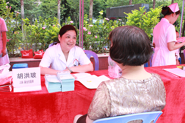 儿科副主任胡洪玻与群众沟通