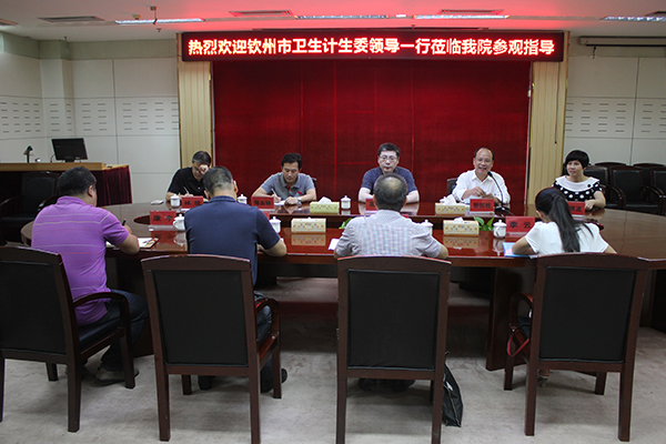 10月9日下午,钦州市卫生和计划生育委员会郑琥副主任带领专家组一行到我院座谈交流,我院副院长高宏君及医务部、医保办、信息宣传部相关负责人热情接待。