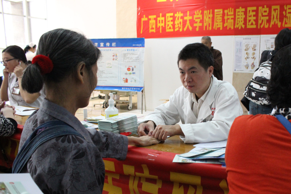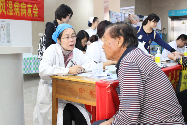 为提醒人们重视关节炎,做到早预防、早诊断、早治疗,防止致残,世界卫生组织设立每年10月12日为“世界关节炎日”。我院风湿免疫科积极响应号召,于2015年10月12-14日在医院门诊住院综合大楼一楼大厅举行“风湿病”义诊活动及病友会,旨在提高大家对风湿病的了解和认识,宣传和普及风湿病知识,做到有病治病,无病防病。